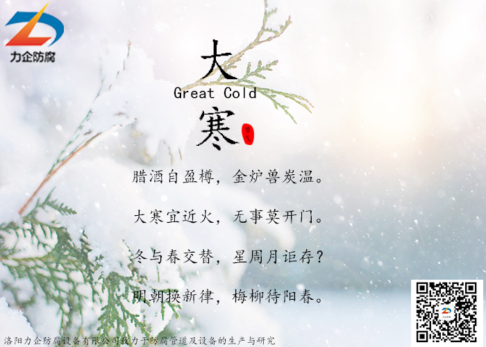 大寒節(jié)氣,時常與歲末時間相重合,是二十四節(jié)氣中的一個節(jié)氣。古典中有對大寒節(jié)氣的描述:“大寒為中者,上形于小寒,故謂之大……寒氣之逆及,故謂大寒?!憋L一更,雪一更,堅冰深處春水生。大寒到頂點,日后天漸暖。初心如雪,靜候寒去,春意將至,敬頌冬綏。”這個時節(jié)寒潮頻至,風大,低溫,嚴寒地區(qū)會呈現(xiàn)出冰天雪地、天寒地凍的嚴寒景象。